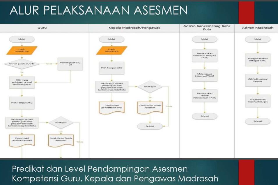 Asesment Kompetensi Guru (AKG), Kepala (AKK) dan Pengawas (AKP) Madrasah yang diperuntukkan untuk semua jenjang pendidikan yang dimulai dari jenjang MI, MTs, dan MA merupakan rencana strategis yang dilaksankan oleh Kementerian Agama dalam rangka meningkatkan mutu pendidikan islam melalui skema Program Pengembangan Keprofesian Berkelanjutan (PPKB).